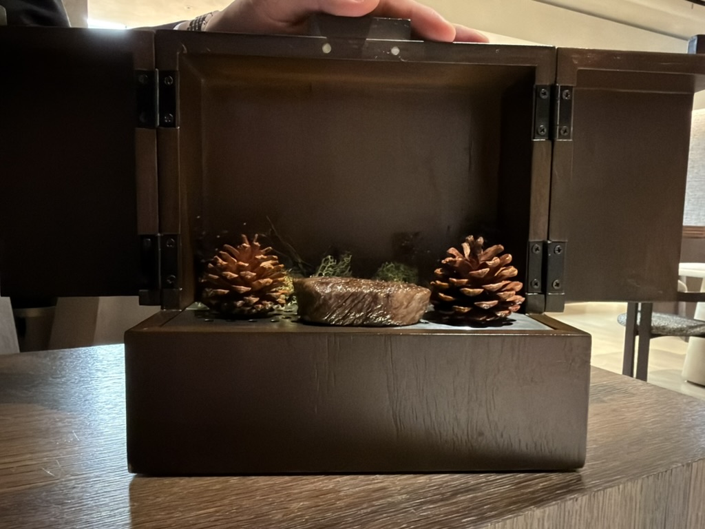 Your steak comes in a little smoking box from Solbam; great meal and they gave me a little hand warmer before I left because it was cold out.